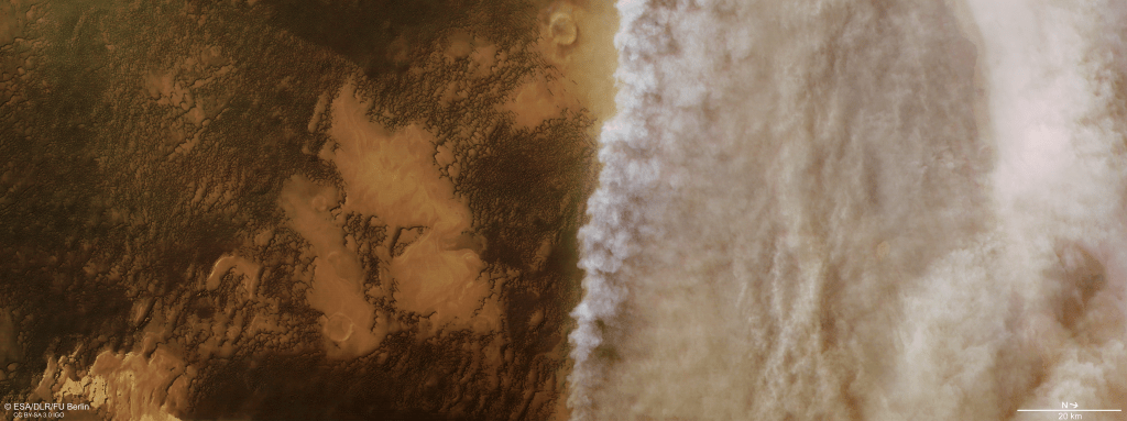 Pero por ahora Marte no es planeta para terrícolas. Hace demasiado frío (noches de hasta -80ºC), la atmósfera es demasiado fina para que pueda albergar agua líquida en la superficie y la radiación ultravioleta atacaría sin piedad nuestro ADN o el de los vegetales que plantáramos para comer. Más allá de su escuálida atmósfera, sus gélidas temperaturas, o de que se tarda entre 6 y 9 meses en llegar (lo que complica un pelín el volver a casa por Navidad), otra gran desventaja de vivir en Marte es el polvo en suspensión. Estas partículas modulan en gran medida el clima del planeta y además son tóxicas. Vamos, que en Marte pasa un poco como en Dune.