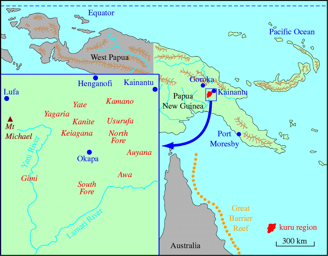 Como os conté en el especial “Lo Macabro”, la tribu Fore es uno de los grupos humanos que se resistía a abandonar los rituales caníbales heredados de los primeros homínidos, y cuando Zigas y Gajdusek llegaron a Papúa, aún era habitual que se comieran porciones de sus familiares muertos en rituales de duelo, incluido el tejido cerebral, consumido principalmente por mujeres y niños. Comer cerebros humanos cual zombis les estaba pasando factura, pues la enfermedad era más prevalente en estos dos grupos de población.