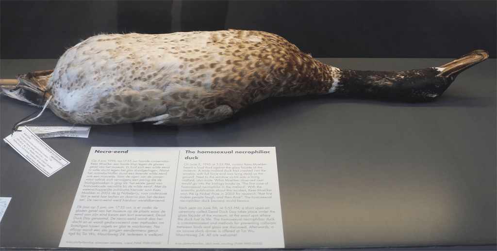 Por cierto, este año se cumple un cuarto de siglo de la publicación de un artículo que ganó el IgNobel —el Nobel de coña—, en el que se describió por primera vez la violación de un cadáver de azulón macho por parte de otro compañero de especie. El pato muerto falleció tras estrellarse contra la fachada del Museo de Ciencias Naturales de Rotterdam. Hay fotos de los hechos, que llegaron a durar 75 minutos…